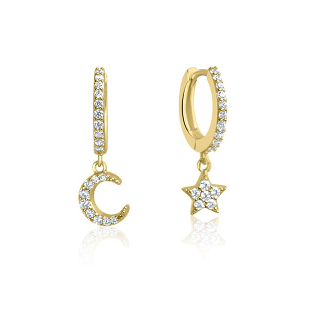 Our gorgeous ECLIPSE Star & Moon huggie hoops are utterly magical, embellished with shimmering pavé crystals to make your ear shine brighter than the stars.
